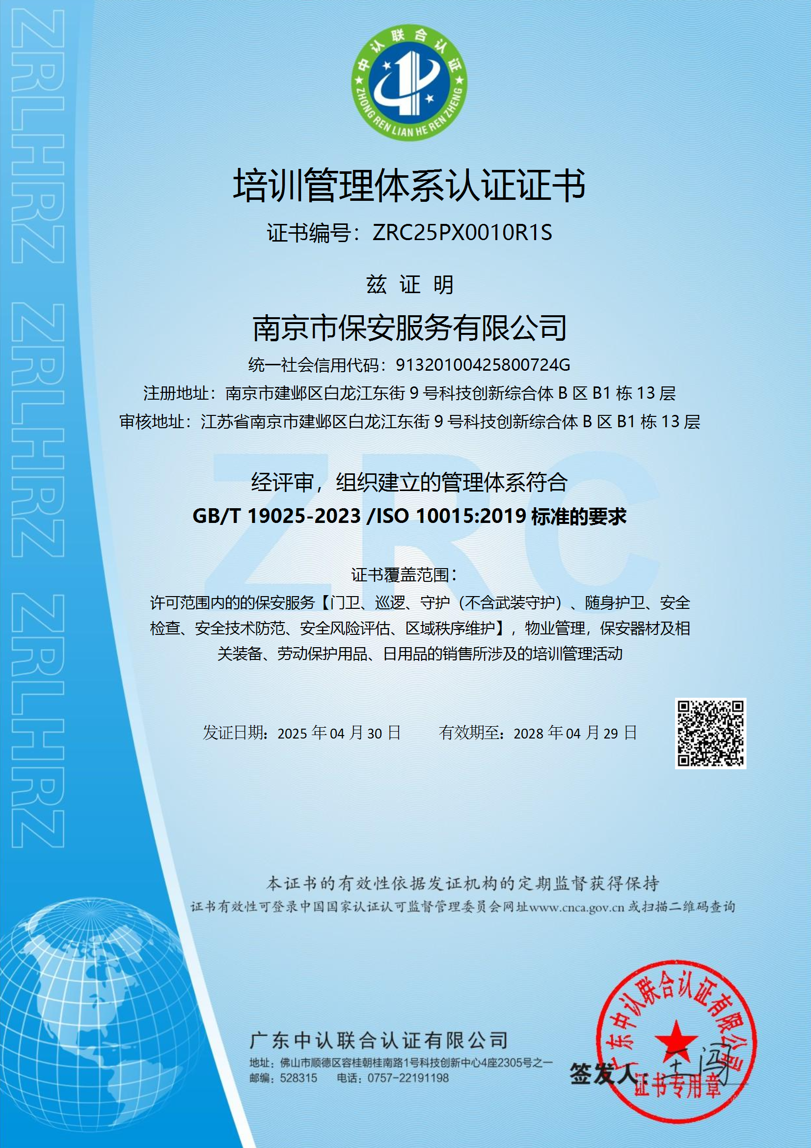 南京市保安服務(wù)有限公司(原南京市保安服務(wù)總公司)成立于1987年4月,是一個(gè)有著悠久安保經(jīng)營歷史和安保經(jīng)驗(yàn)沉淀的大型國有保安企業(yè),現(xiàn)為中國保安協(xié)會(huì)常務(wù)理事單位,江蘇省保安協(xié)會(huì)常務(wù)理事單位,南京市保安協(xié)會(huì)副會(huì)長單位,江蘇省一級保安服務(wù)公司。